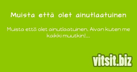 Muista että olet ainutlaatuinen. Aivan kuten me kaikki muutkin!