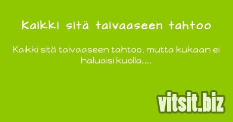 Kaikki sitä taivaaseen tahtoo, mutta kukaan ei haluaisi kuolla.
