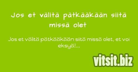 Jos et välitä pätkääkään siitä missä olet, et voi eksyä!