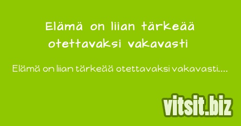 Elämä on liian tärkeää otettavaksi vakavasti.