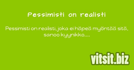 Pessimisti on realisti, joka ei häpeä myöntää sitä, sanoo kyynikko.