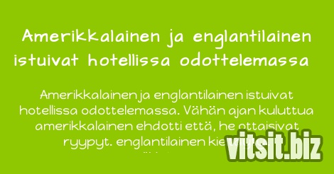 Amerikkalainen ja englantilainen istuivat hotellissa odottelemassa. Vähän ajan kuluttua amerikkalainen ehdotti että, he ottaisivat ryypyt. englantilainen kieltäytyi.