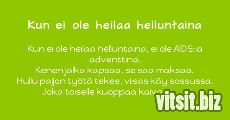 Kun ei ole heilaa helluntaina, ei ole AIDS:ia adventtina.
