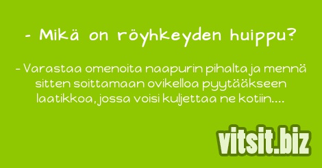 - Varastaa omenoita naapurin pihalta ja mennä sitten soittamaan ovikelloa pyytääkseen laatikkoa, jossa voisi kuljettaa ne kotiin.