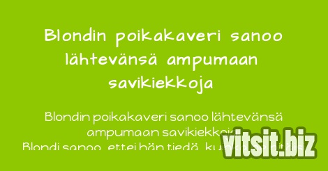 Blondin poikakaveri sanoo lähtevänsä ampumaan savikiekkoja. Blondi sanoo, ettei hän tiedä, kuinka ne pitäisi valmistaa