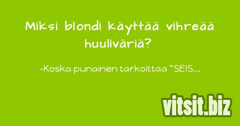 Blondi seisoi silmät kiinni peilin edessä. www.vitsit.biz Aviomies kysyi syytä tähän. - Haluan nähdä miltä näytän nukkuessani!