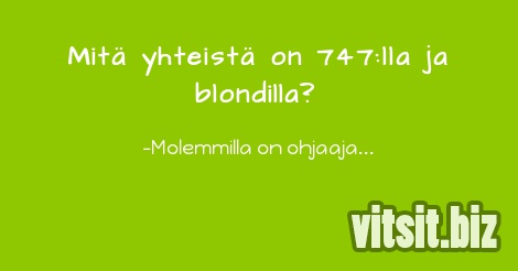 - Mitkä olisivat olleet blondin ensimmäiset sanat, jos hän olisi päässyt kuuhun ensimmäisenä ihmisenä? - Ihanaa, painostani lähti juuri yli neljäkymmentä kiloa!
