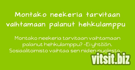 Montako neekeria tarvitaan vaihtamaan palanut hehkulamppu? -Ei yhtään. Sosiaalitoimisto vaihtaa sen niiden puolesta.
