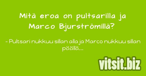 - Pultsari nukkuu sillan alla ja Marco nukkuu sillan päällä