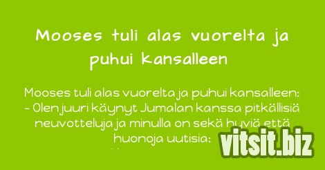 Mooses tuli alas vuorelta ja puhui kansalleen: