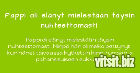 Pappi oli elänyt mielestään täysin nuhteettomasti. Niinpä hän oli melko pettynyt, kun hänet taivaassa kytkettiin kiinni rumaan ja pahansisuiseen eukkoon.