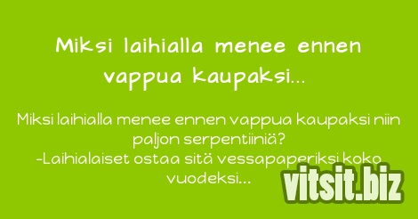 Miksi laihialla menee ennen vappua kaupaksi niin paljon serpentiiniä? -Laihialaiset ostaa sitä vessapaperiksi koko vuodeksi