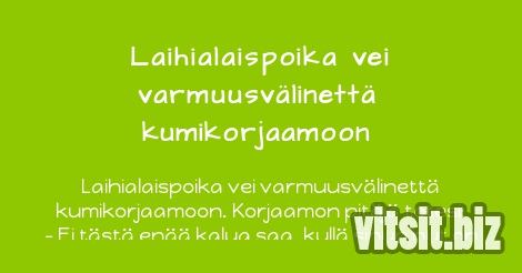 Laihialaispoika vei varmuusvälinettä kumikorjaamoon. Korjaamon pitäjä totesi: