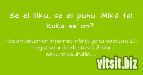- Se on tietenkin Internet-nörtti, joka odottaa 20-megatavun tiedostoa 0.8 kilon sekuntivauhdilla.