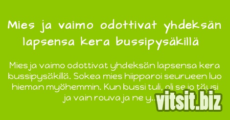 Mies ja vaimo odottivat yhdeksän lapsensa kera bussipysäkillä. Sokea mies hiipparoi seurueen luo hieman myöhemmin. Kun bussi tuli, oli se jo täysi ja vain rouva ja ne yhdeksän lasta mahtuivat bussiin. Niinpä perheen isä ja sokea päättivät kävellä.