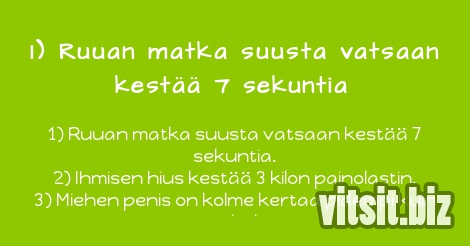 1) Ruuan matka suusta vatsaan kestää 7 sekuntia.