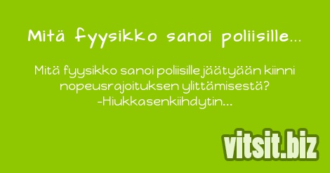 Mitä fyysikko sanoi poliisille jäätyään kiinni nopeusrajoituksen ylittämisestä? -Hiukkasenkiihdytin