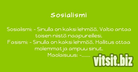 Sosialismi: - Sinulla on kaksi lehmää. Valtio antaa toisen niistä naapureillesi.