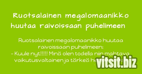 Ruotsalainen megalomaanikko huutaa raivoissaan puhelimeen: