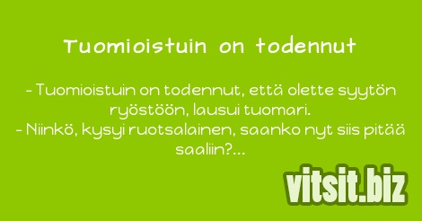 - Tuomioistuin on todennut, että olette syytön ryöstöön, lausui tuomari. - Niinkö, kysyi ruotsalainen, saanko nyt siis pitää saaliin?