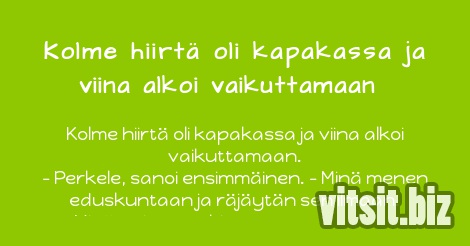 Kolme hiirtä oli kapakassa ja viina alkoi vaikuttamaan.